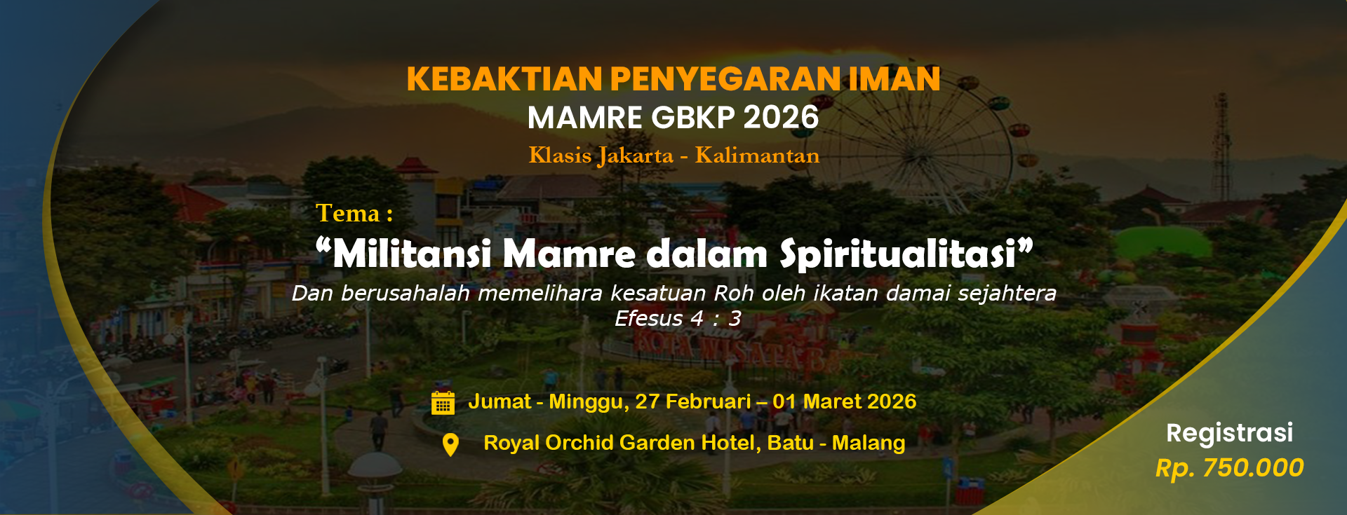 Kami mengundang seluruh Mamre se-GBKP dan khususnya Klasis Jakarta–Kalimantan untuk mendukung acara ini dengan doa, dana, dan daya, agar melalui pertolongan Tuhan Yesus, KPI Mamre 2026 dapat berjalan dengan sukses sesuai harapan kita bersama. Dukung acara KPI Mamre 2026 - Klasis Jakarta–Kalimantan dengan menjadi Peserta (khusus Klasis Jakarta–Kalimantan) atau Donatur